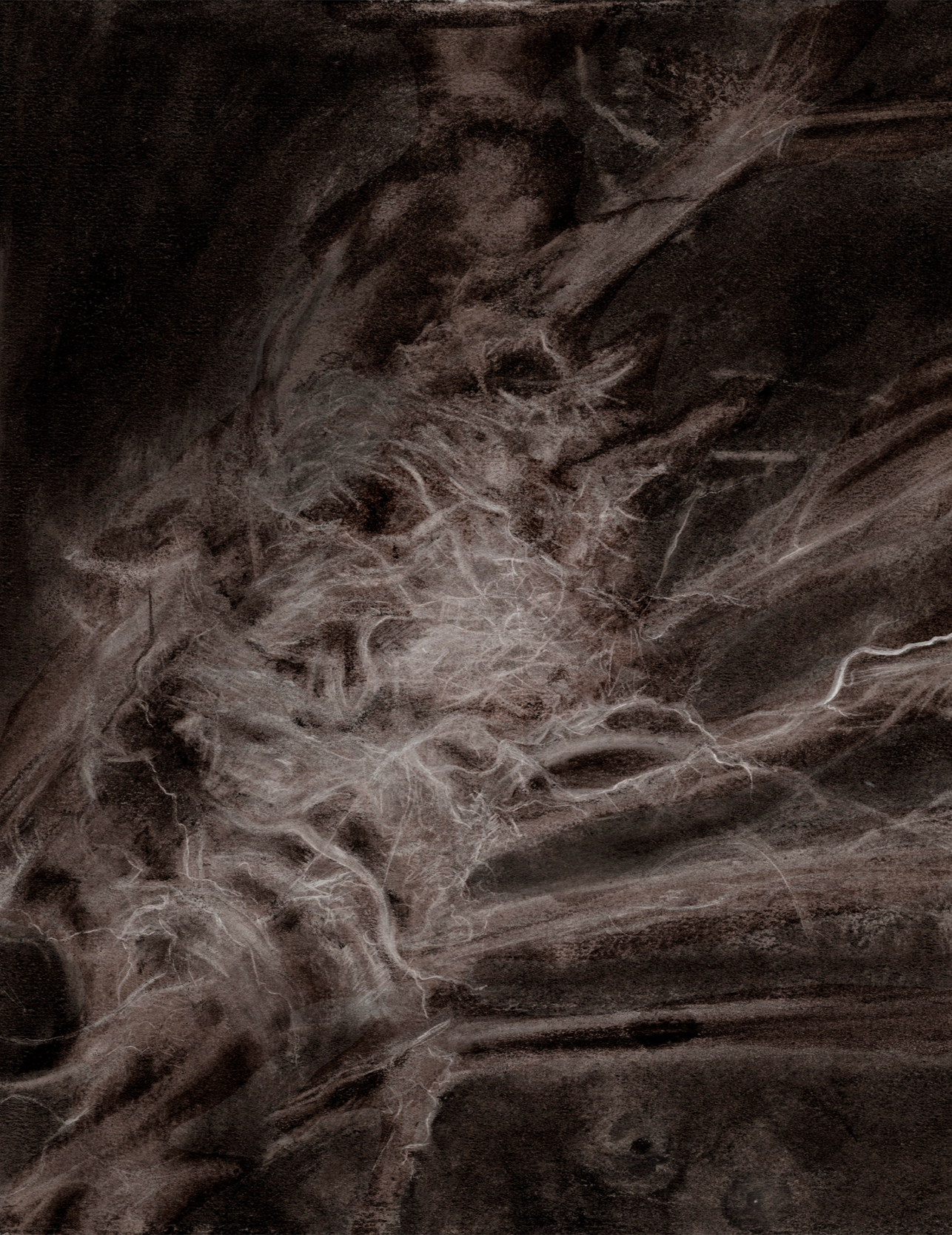 If drawing is the working, the inversion is the conduit for black light and the finished image is the trace that carries the charge. An apparition where the tensions between opposites are not resolved but kept alive.